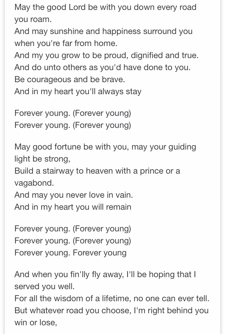 Listening to Rod Stuart’s Forever Young today on the radio gave me all the feels. It’s an old song, but it’s lyrics and the season of graduation, remind me of how I feel for all of the young people who have laughed, sat, cried, sang, and enjoyed the classroom experience with me at some point these last fifteen years.